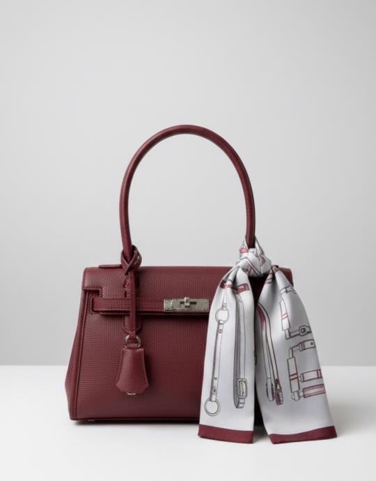 Fular İmza monogram bordo